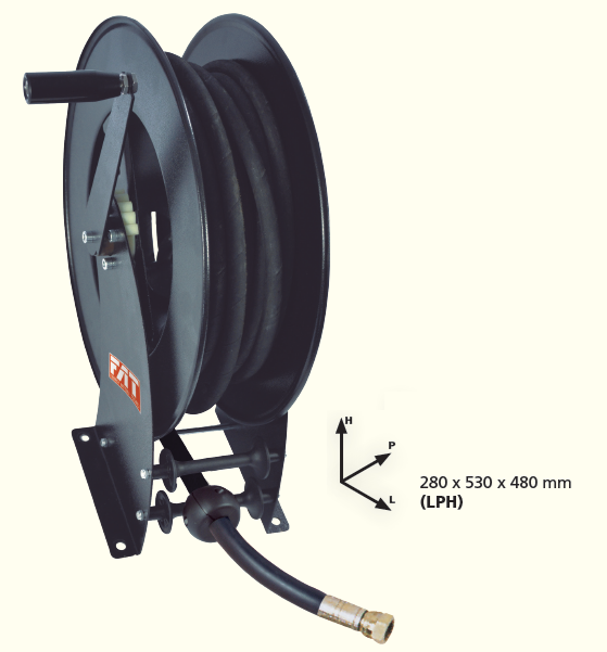 Mod. A51O15 AVVOLGITUBO AUTOMATICO con staffa girevole completo di 15m tubo alta pressione per olio (1/2R1)