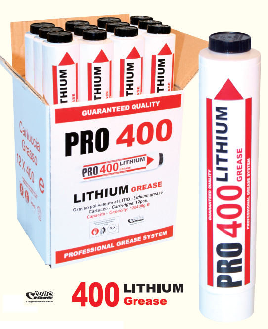 “Grasso polivalente al Litio” Mod. KART/PRO-400 • CARTUCCIA A VITE 400g “Lithium Grease” Capacità : 400g Ø est. : 52mm Confezione : 12 pezzi/pcs./pieces Temp.min/max: -20°C +120°C SCHEDA TECNICA SCHEDA DI SICUREZZA