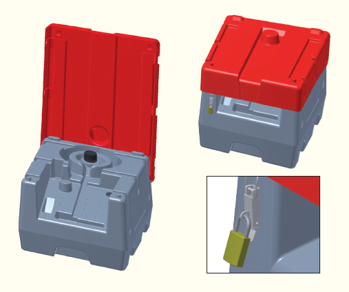 Coperchio di fissaggio lucchettabile in plastica