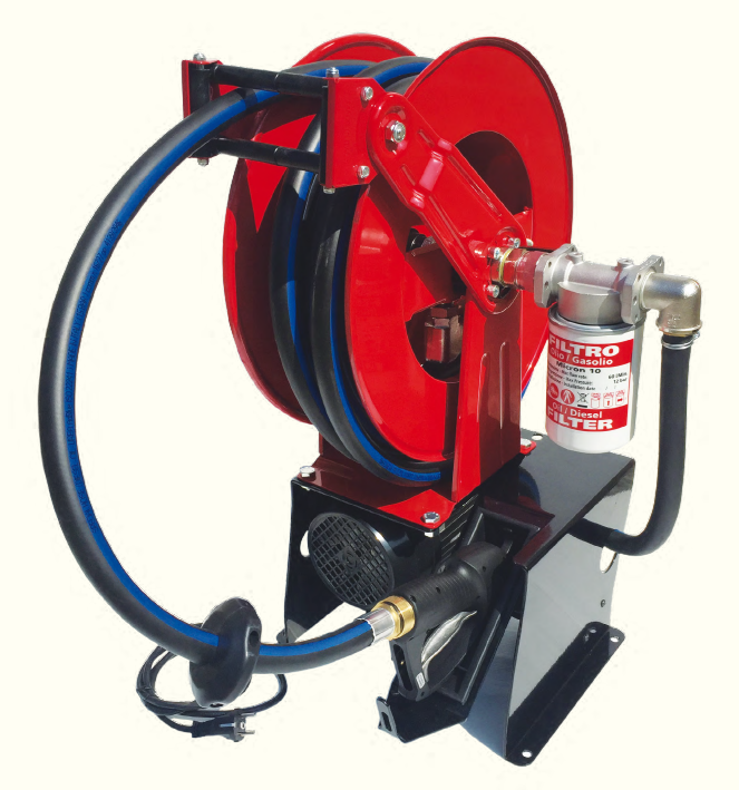 Elettropompe olio 220V con avvolgitubo automatico a molla (20-40 L/Min.), complete con 2m cavo
