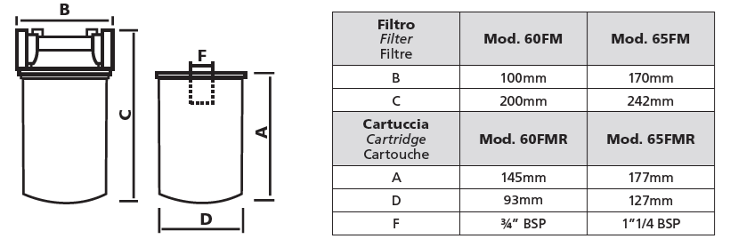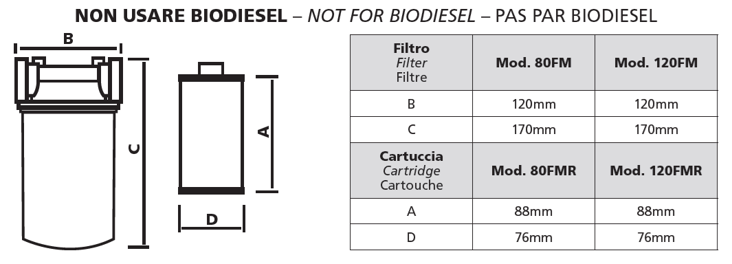 FILTRI A CARTUCCIA - SEPARATORI ACQUA/BIODIESEL (non usare per gasolio)