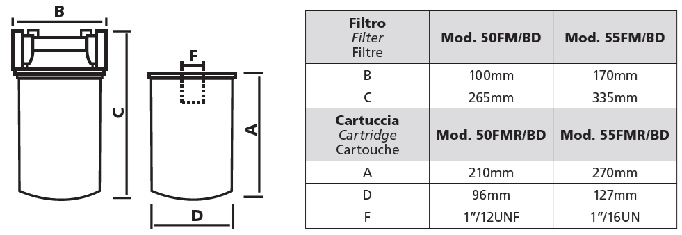 FILTRI A CARTUCCIA - SEPARATORI ACQUA/GASOLIO