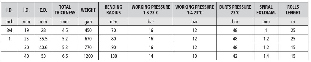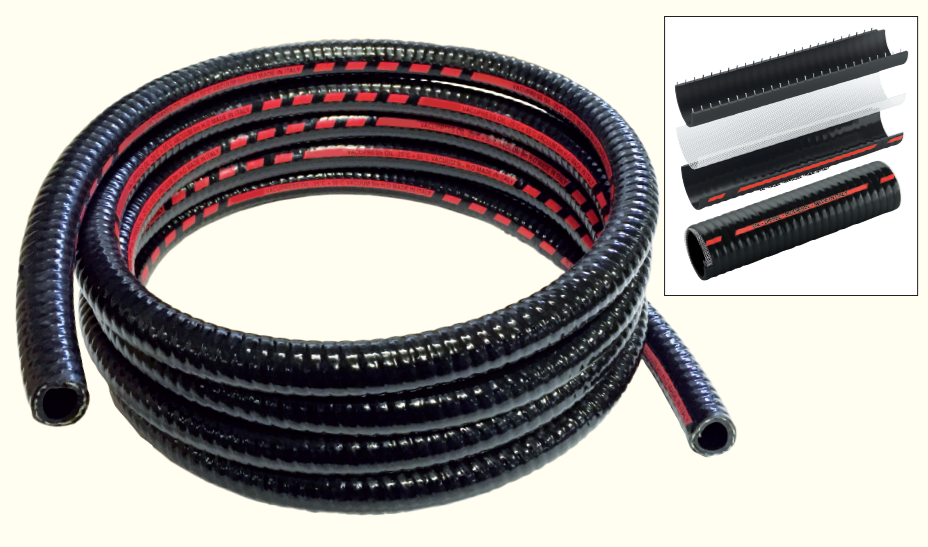 Tubi termoplastici a base PVC, PU, GOMMA NITRILICA a due strati con spirale in acciaio zincato